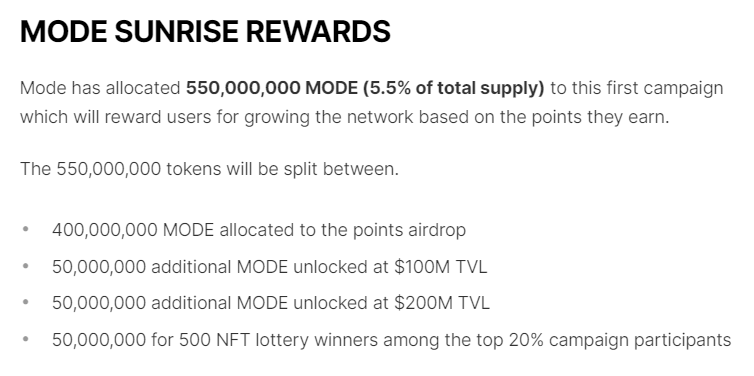 > Mode Smart Treasury: it uses network revenue to buyback and reissue MODE to devs and users.