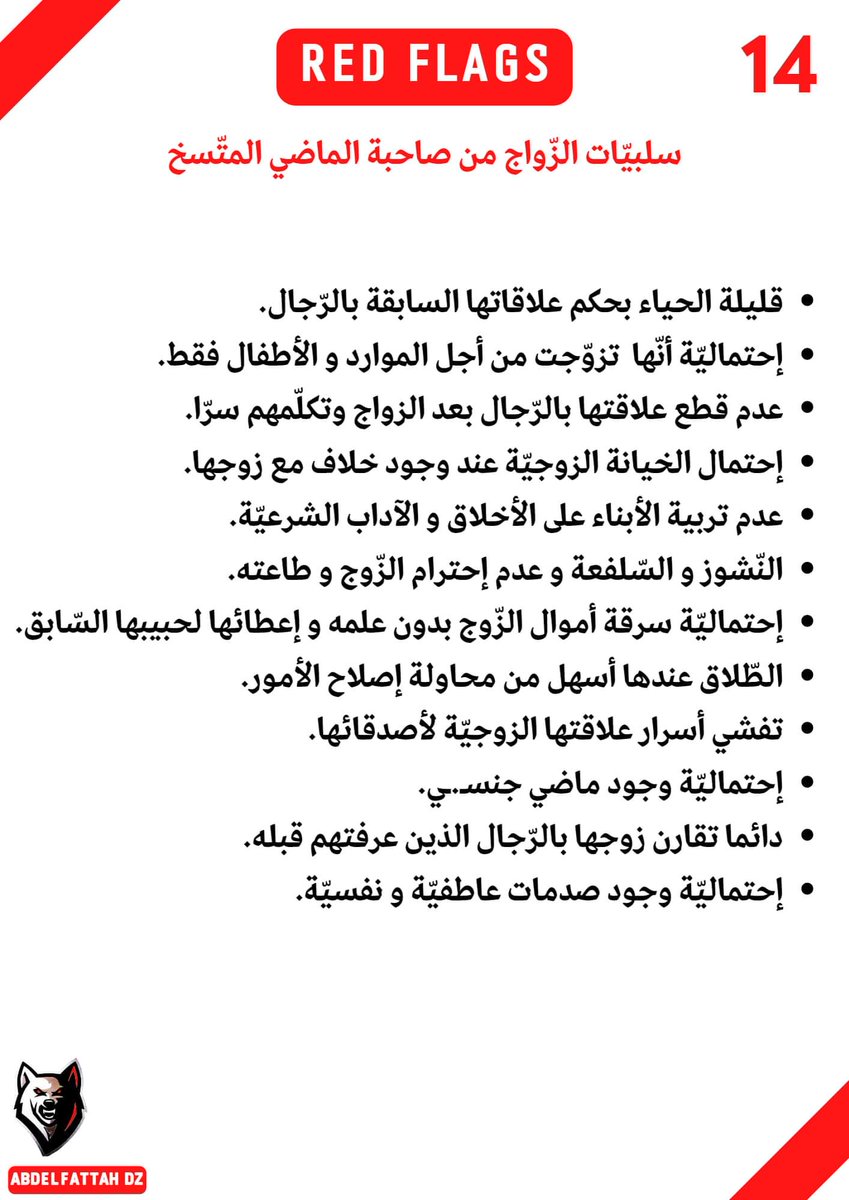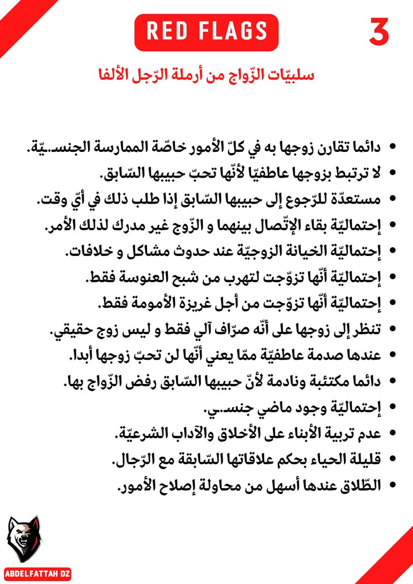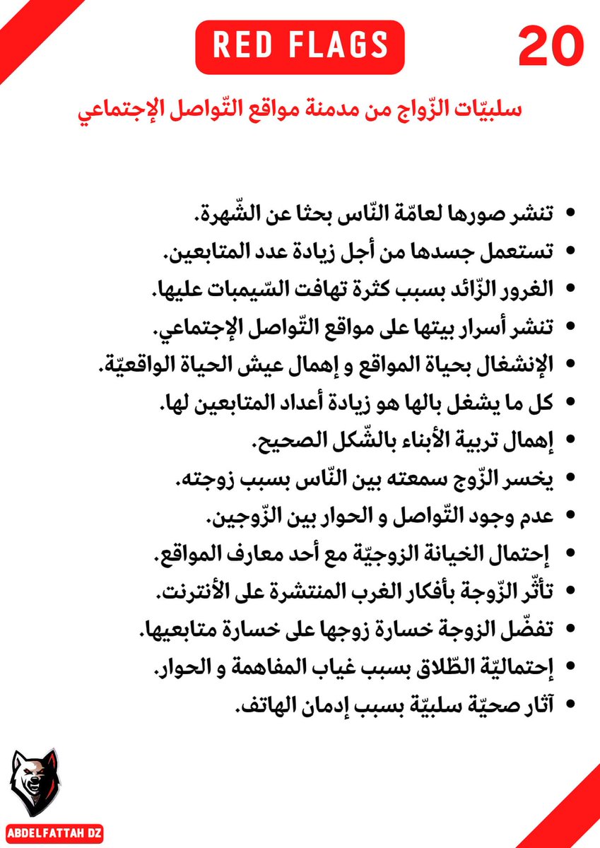 -20 إشارة حمراء، إذا شاهدتها ، فاهرب من المرأة كهروبك من الأسد.