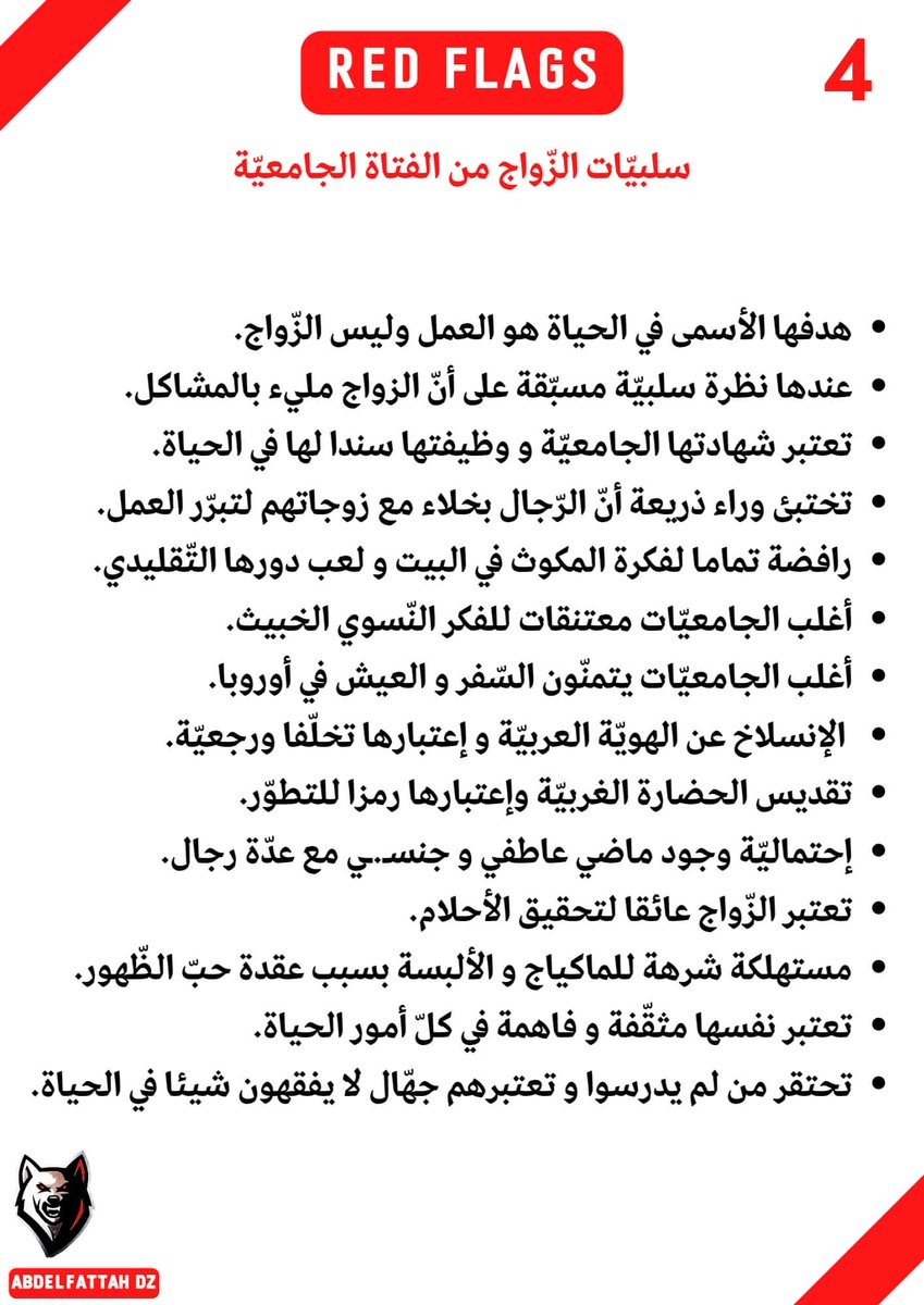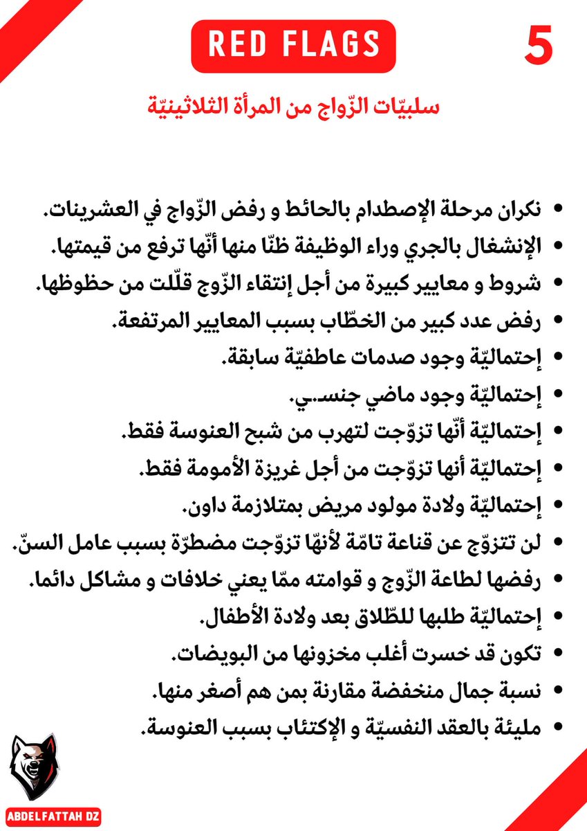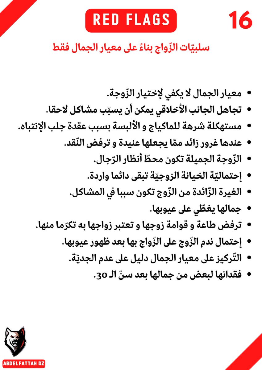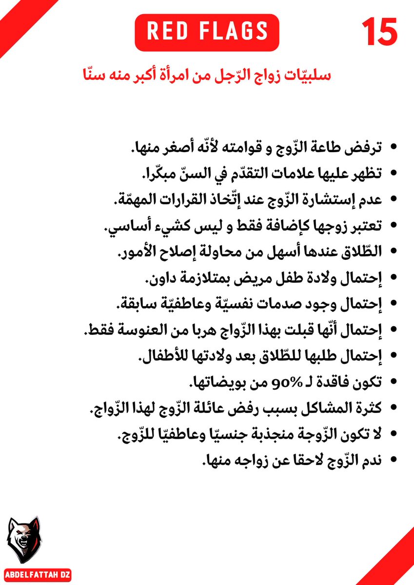 -20 إشارة حمراء، إذا شاهدتها ، فاهرب من المرأة كهروبك من الأسد.
