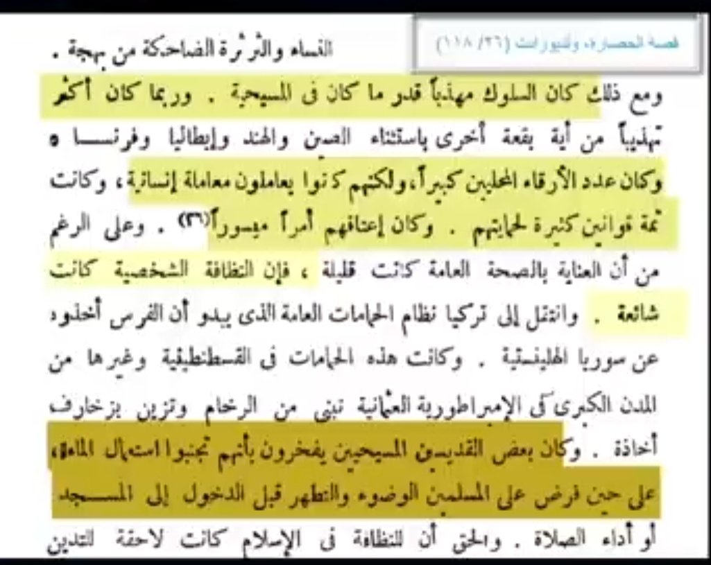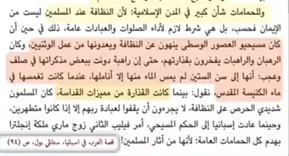 ويقول المؤرخ دريبار ان المسلمون علمونا النظافة ...