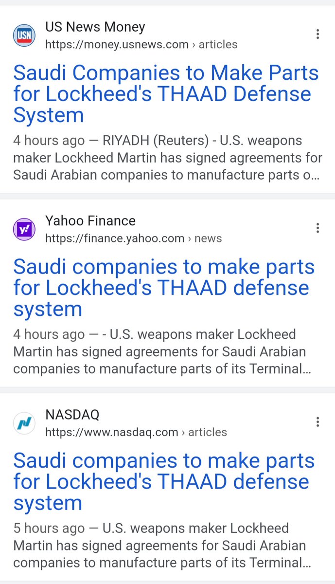 تناقلت الصحف العالمية اليوم الاعلان في #معرض_الدفاع_العالمي2024 في #الرياض عن توقيع شركة "لوكهيد مارتن" عقدين مع شركات سعودية لتوطين تكنولوجيا تصنيع أجزاء من منظومة #THAAD #ثاد الدفاعية محليا.