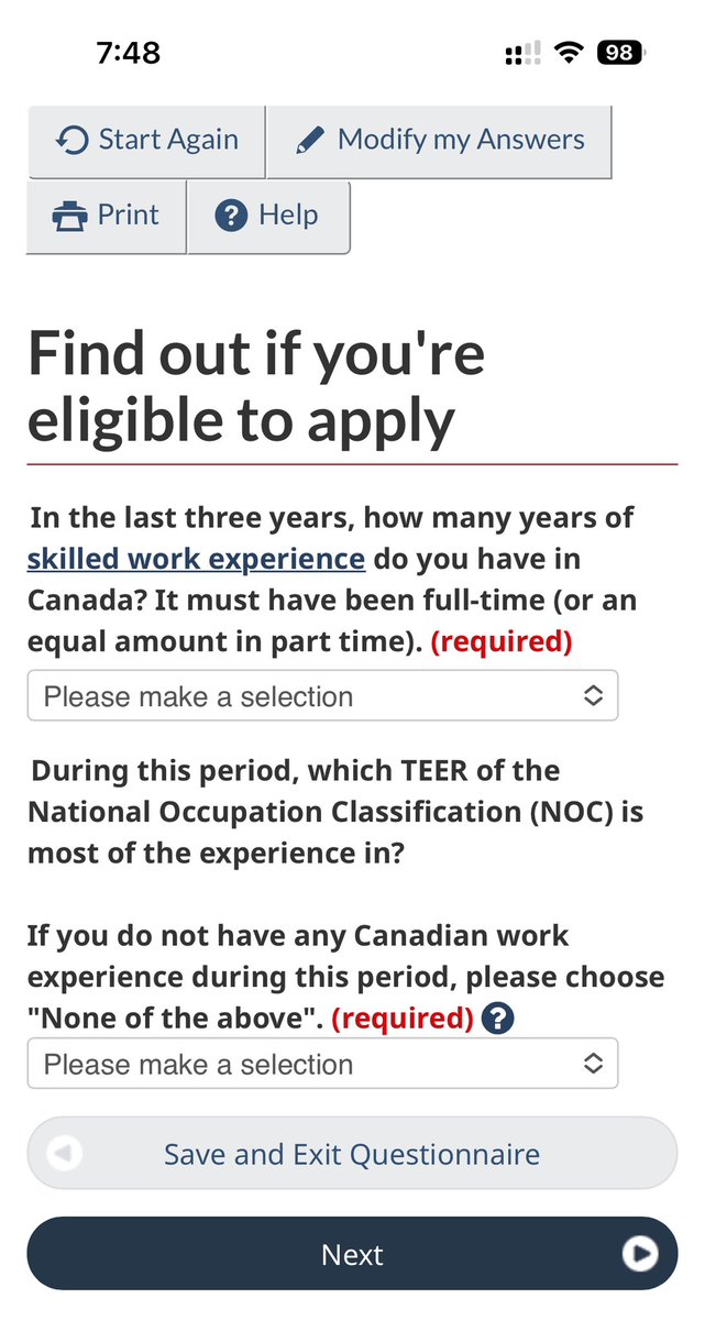 نجي للخبرة،السؤال عن عدد سنوات الخبرة في كندا، والسؤال البعده عن المهنة بتاعتك في ياتو مجموعة ضمن تصنيفهم للمهن.. طبعا موضوع تصنيف المهن ده موضوع براه.. لكن الواحد يشوف اقرب مسمّى وظيفي لي مهنته في الرابط ده