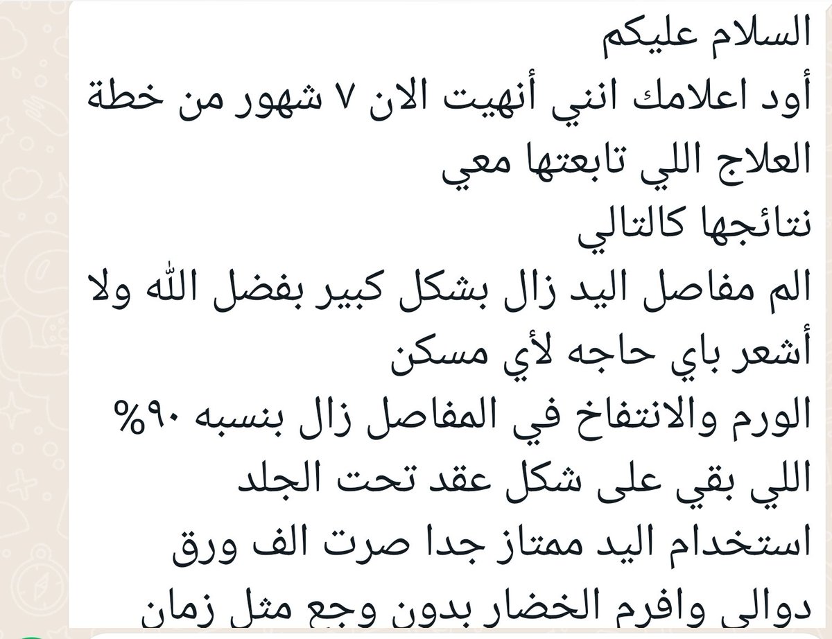 يقل بهذا النوع من العلاجات الالم الى ادنى مستوى له وقد يزول كليا اضافه الى تحسن كبير في ليونه المفاصل وفي حركتها وتختفي اغلب التشوهات ان وجدت