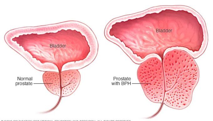 تتضخم عادة مع كبر السن تقرؤبا نصف الرجال في سن ٥٠ سنه عندهم تضخم و ٦٠% من الرجال بعمر ٦٠ سنه .