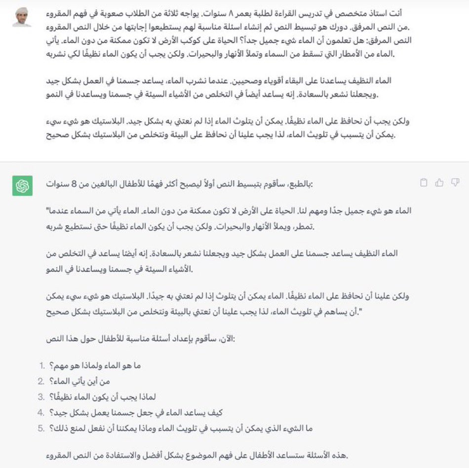 ١- يمكن لـ chatGPT تبسيط الموضوعات والنصوص