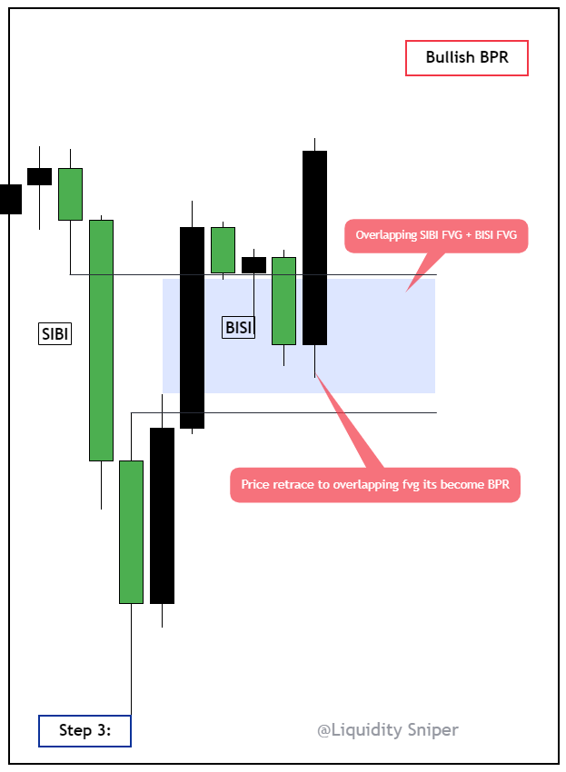 Bullish BPR Example:- Step 1 : Mark SIBI (FVG)
