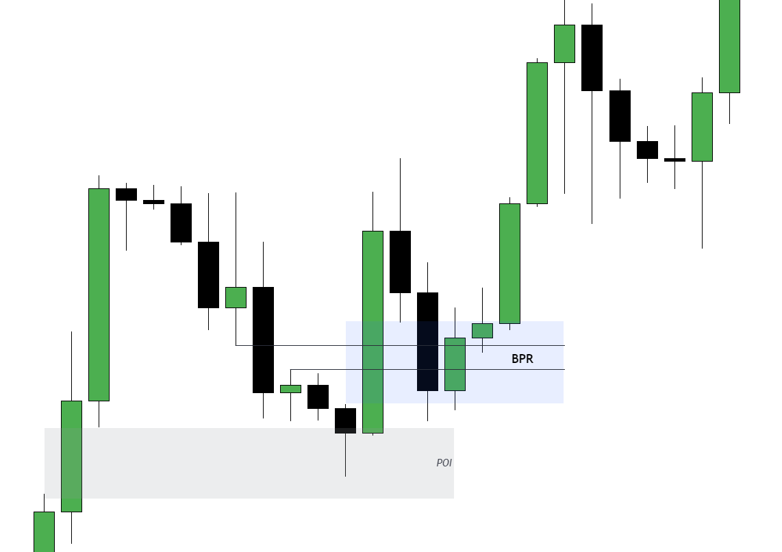 - When the next candle closes below the BPR, anticipate a rapid shift from Buy Side to Sell Side.