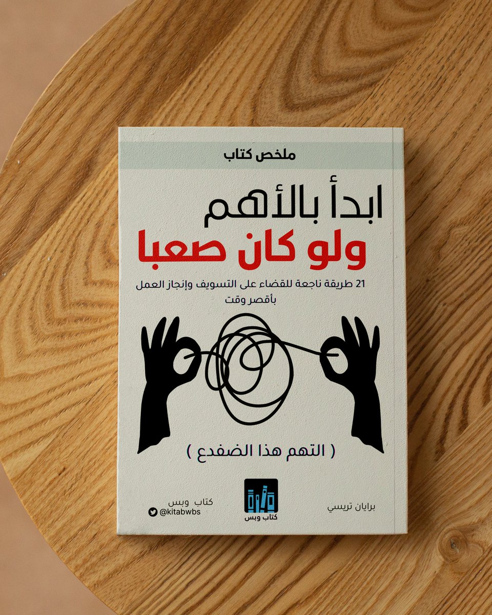 قم بعمل المهمة الأصعب لديك ولا تٌأجلها من خلال الترتيب للمهمات المسبق وفقاً لقاعدة باريتو 80/20 ورتبها حسب قاعدة ا ب ج د هــ ، ثم لا تضيع وقت وتخلص من أي أشياء تعطلك وتبدأ بالمهمة الصعبة فوراً بكل ثقة بأنك قادر على إنجازها، وحاول ان تفعل ذلك لمدة 21 يوم حتى تصبح عادة لديك.