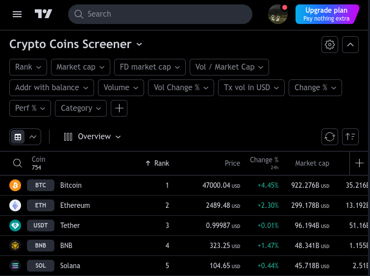 ثريد خفيف عن سكرينر متقدم للعملات الرقمية ، الأسهم و صناديق ETF تقدمه منصة TradingView بمميزات كثيرة و خصائص جديدة خلافاً عن الشائع و مجاناً لكُل المستخدمين 🔥👌🏻 .