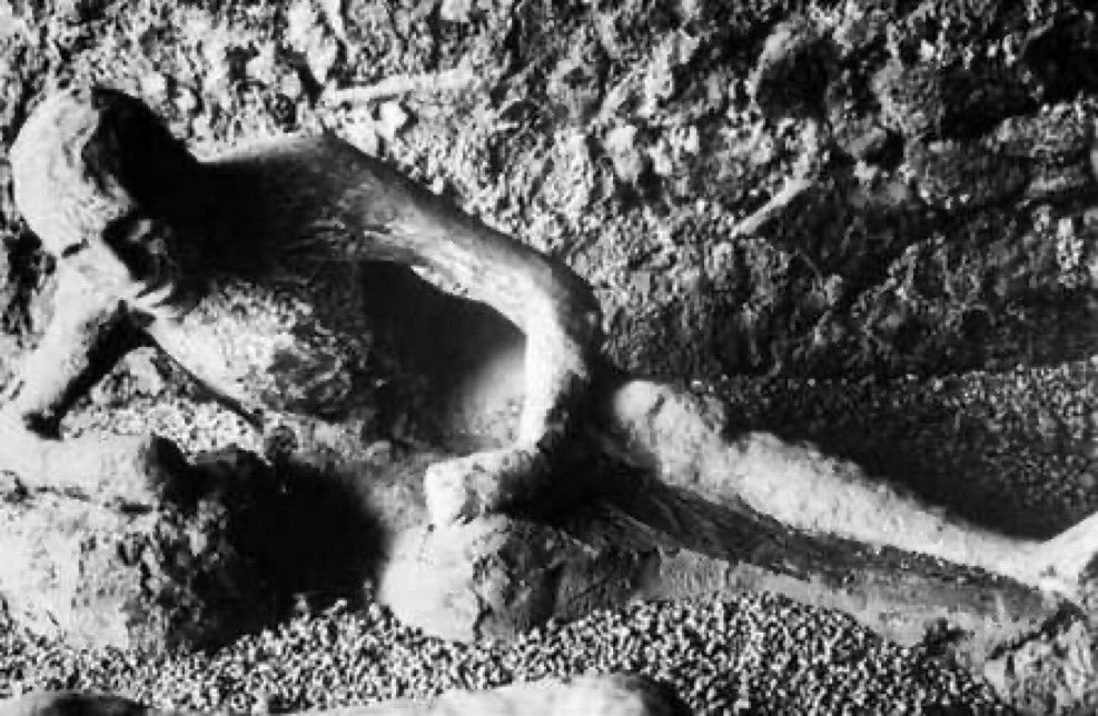يقال عندما انفجر البركان ارتفع الرماد إلى 9 أميال فى السماء وخرج منه كمية كبيرة من الحمم، ويقول الباحثين أن كمية الطاقة الناجمة عن انفجار البركان يفوق أكبر قنبلة نووية ثم تساقط الرماد عليهم كالمطر ودفنهم تحت 20 متر تقريبا.