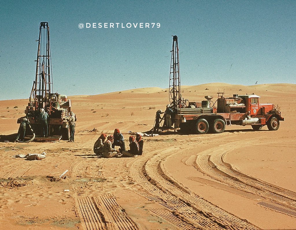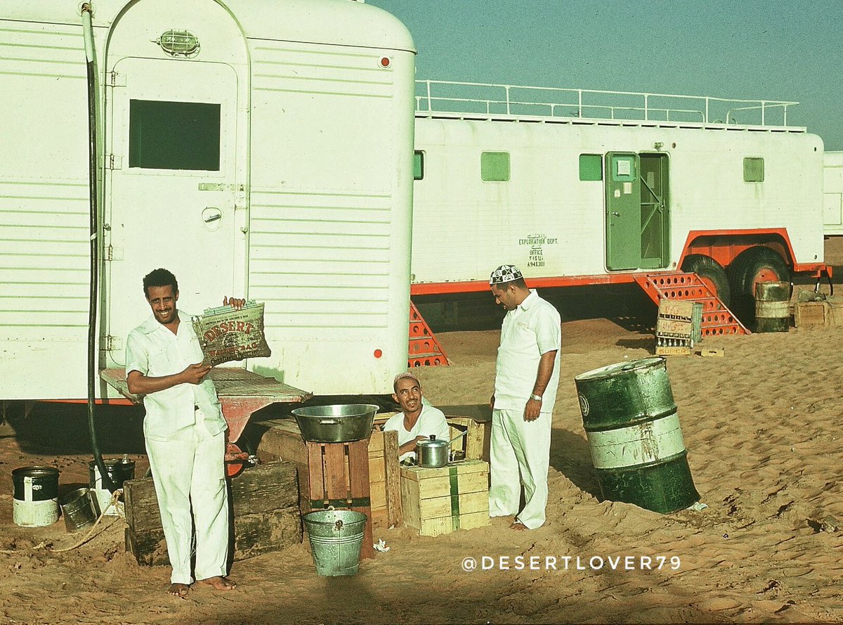 32 صورة . رحلات الاستكشاف و التنقيب عن النفط في صحراء الربع الخالي في محافظة الاحساء . شركة ارامكو 1958 م