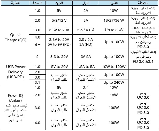 وهناك تقنيات تستخدم للشحن مثل PowerIQ اللي تستخدمها Anker#