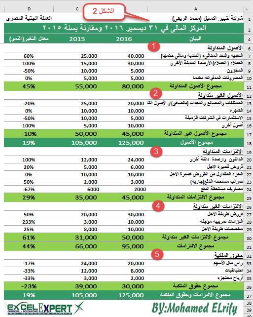الثانية: (قيمة البند فى الفتره الحالية (2016)/ قيمة البند فى الفتره السابقة (2015))-1