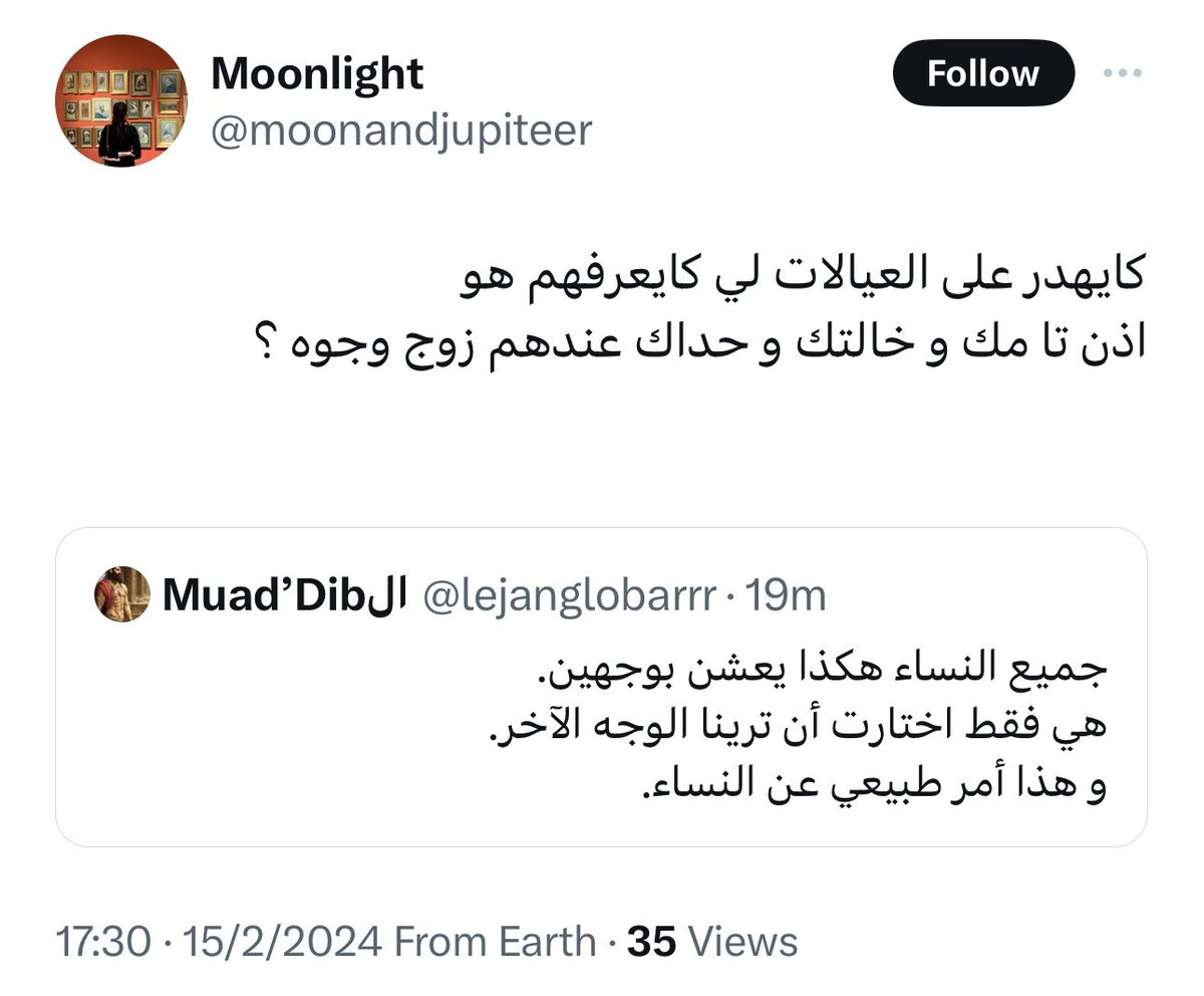 لن تجد حرجا في رمي أنثى تحت الحافلة من أجل أن تُنهي النّقاش باستخدام لُغة "أخلاقية" و ليس علمية أو منطقية.