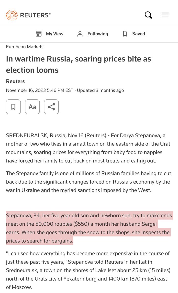 My guy, the grocery bill you're rhapsodizing about is ~SEVENTY PERCENT of a median Russian weekly salary (13.4k RUB) 🧵