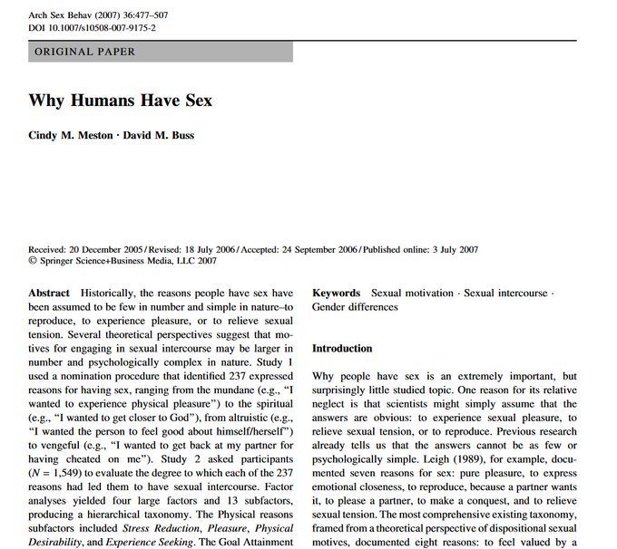 "قم بإدراج جميع الأسباب التي قد تجعلك تفكر في سبب قيامك أنت أو أي شخص تعرفه بممارسة الجنس في الماضي."