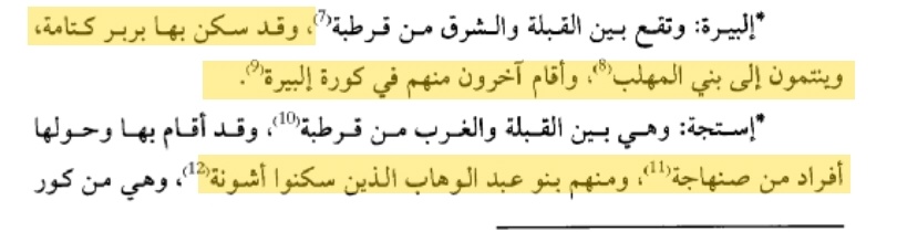 ▪︎هذه هي إشبيلية العربية كما يحاول البعض الكذب على نفسه، ثم يتابع الكاتب في دحض الاساطير و يذكر مناطق اخرى في الجنوب مثل جيان إلبيرة و إستجة :"" #جيان وتقطنها جماعات #كثيرة_من_البربر، ومنهم بنو #دراج الصنهاجيون الذين كانوا مقيمين بقسطلة دراج، وهي مدينة من أعمال جيان، كما يوجد بهذه المنطقة أسر أخرى من #صنهاجة و #هوارة، وكانت تقيم في جيان وما حولها""!