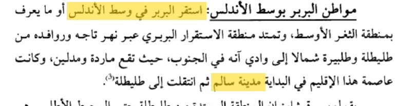 ▪︎ننتقل إلى وسط الأندلس حيث نجد هناك إستيطانا امازيغيا قويا ايضا، فالقبائل الامازيغية استوطنت كل الاندلس حتى الشمال و حمت الثغور، و هذا ما سنبينه اليوم فيقول :"" استقر البربر في #وسط الأندلس أو ما يعرف بمنطقة الثغر الأوسط، وتمتد منطقة الاستقرار البربري عبر نهر تاجه وروافده من #طليطلة وطلبيرة شمالا إلى وادي أنه في الجنوب، حيث تقع ماردة ومدلين، وكانت عاصمة هذا الإقليم في البداية مدينة #سالم ثم انتقلت إلى طليطلة.