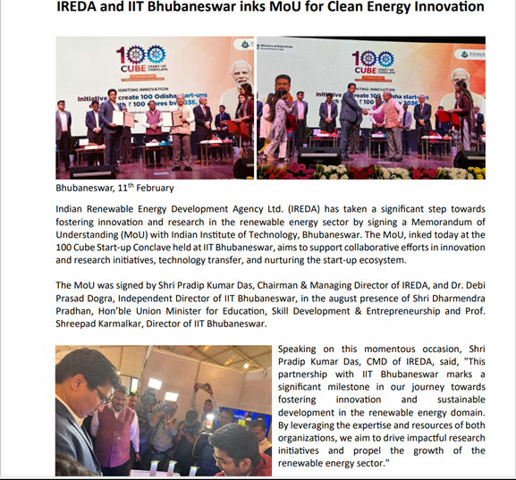 8/ Operational Excellence: #IREDA has signed MOU with IIT to drive innovation, research, technology transfer, & nurturing startup growth, with a focus on capacity building in the promising renewable energy sector. #InvestInIREDA🇮🇳#RenewableEnergy
