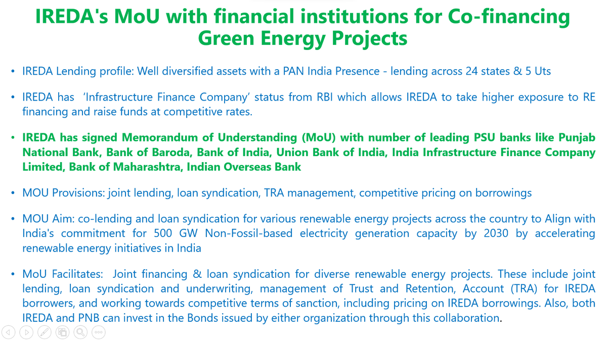 12/🤝 Exciting collaboration alert! #IREDA teams up with major PSBs & financial firms to co-finance Renewable Energy Projects, driving sustainable development! 🌿💡 #RenewableEnergy #Collaboration #InvestInIREDA🇮🇳