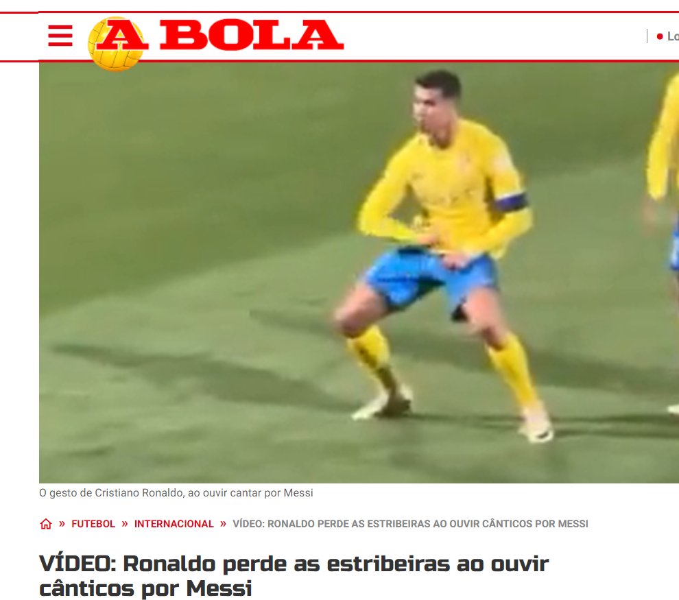 🚨🚨صحيفة "غلوبو سبورت" البرازيلية: "تعرض #رونالدو لانتقادات في السعودية بسبب لفتة نابية بعد مباراة #النصر مع #الشباب.. النجم البرتغالي انزعج من هتافات “ميسي” من جماهير الشباب، وبعد استفزاز الجماهير وضع يده خلف أذنيه، ثم أشار البرتغالي بذراعيه نحو منطقة الحوض. وعلى الرغم من أن البث الرسمي لم يلتقط الحركات، إلا أن مقاطع الفيديو المصاحبة للصور بدأت تنتشر على وسائل التواصل الاجتماعي، وهذا ليس الجدل الأول من نوعه الذي يتورط فيه كريستيانو هذا الموسم. في وقت سابق من هذا الشهر، عندما توجه إلى غرفة تبديل الملابس بعد الهزيمة 2-0 أمام #الهلال في مباراة ودية، التقط وشاحًا ألقاه أحد مشجعي المنافس، ووضعه داخل سرواله ثم ألقاه على الأرض".