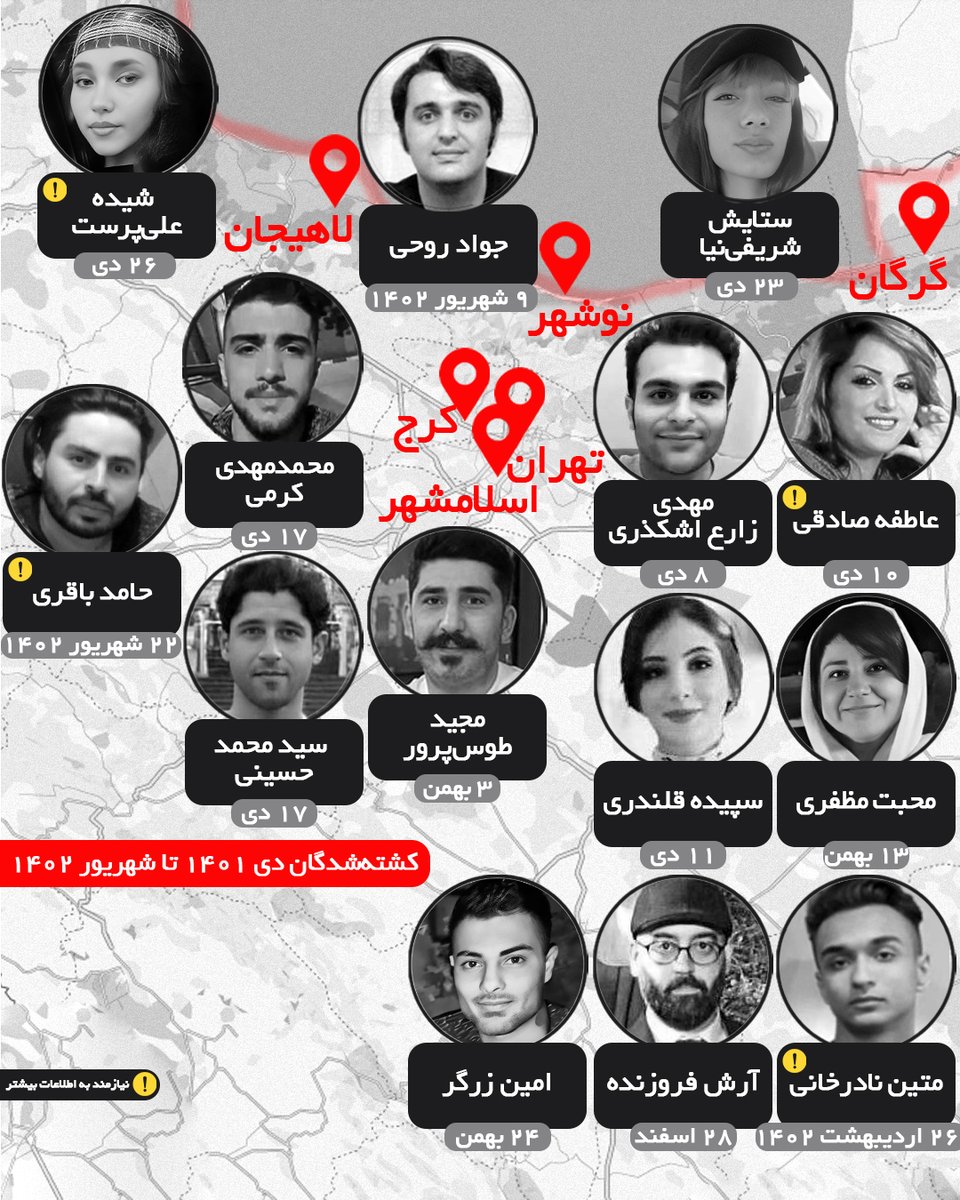 کشته‌شدگان دی ۱۴۰۱ تا شهریور ۱۴۰۲