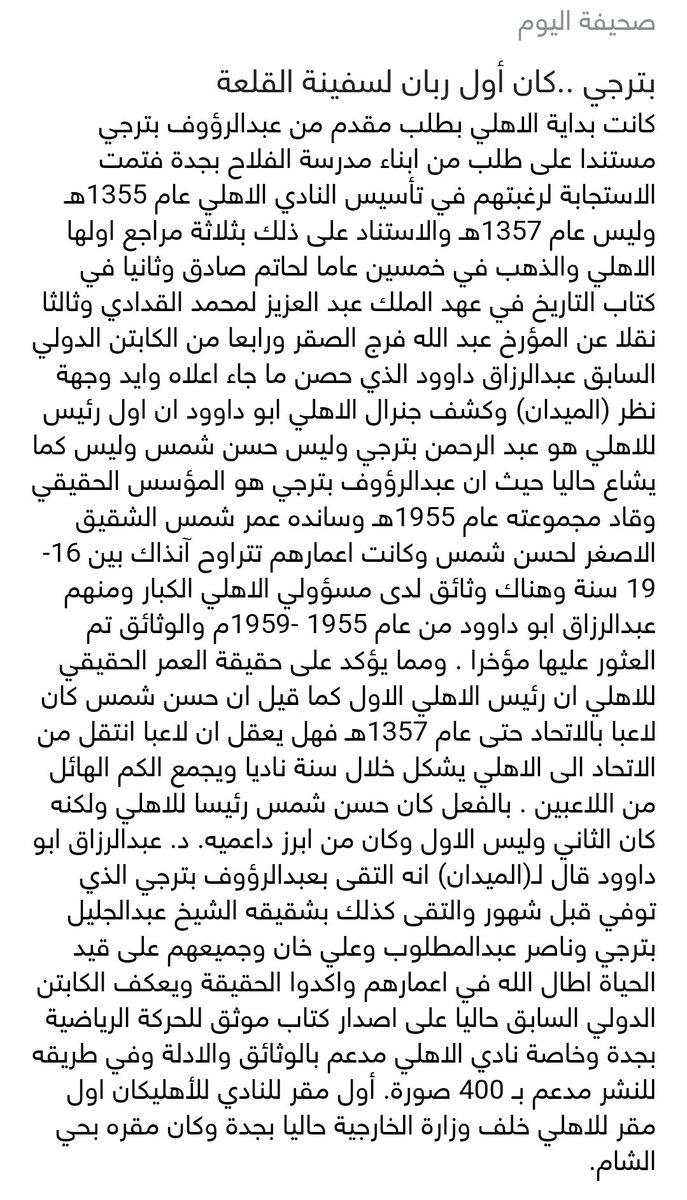 مؤسس الاهلي عبدالرؤوف بترجي وليس حسن شمس .