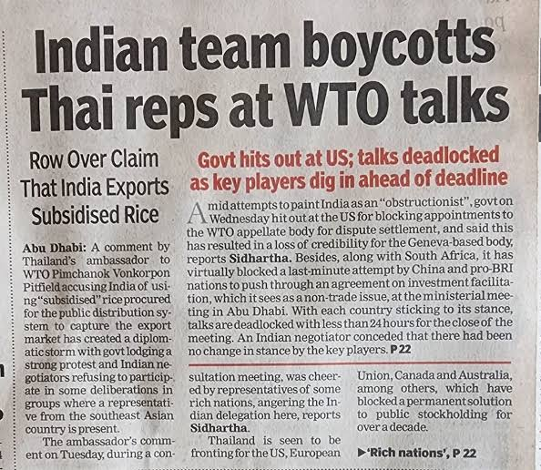 #India invoked the #Peace Clause, for the third time, for exceeding the 10 per cent ceiling on support it offers to #RiceFarmers for 2020-21