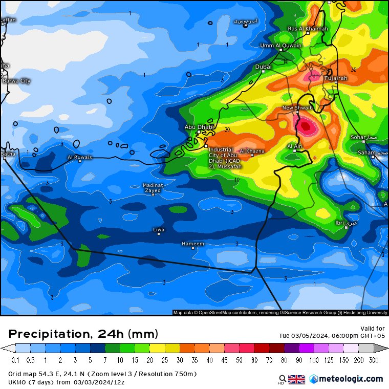 مرفق توقع النموذج البريطاني للموجة الاولى من مساء الاثنين الى مساء الثلاثاء