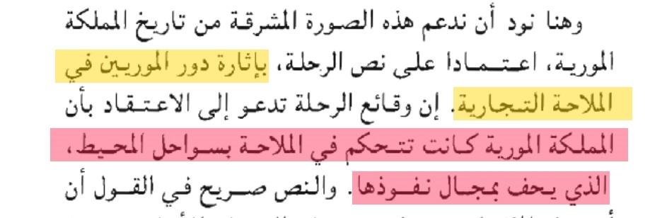 ▪︎ #قوة_المملكة_المورية_البحرية فيقول صاحب المعلمة عن قوة المور و سيطرتهم على بحارهم و هذا قبل الغزو الروماني الغاشم و هذا دليل قوي ان #المور عرفوا الحضارة و عرفوا الدولة و عرفوا التوحد و السيطرة على مجالهم البحري و البري قبل الاحتكاك بالرومان جلاب الحضارة على حد ما يزعم المرتزقة ! :"" وهنا نود أن ندعم هذه الصورة المشرقة من تاريخ المملكة المورية، اعتمادا على نص الرحلة، بإثارة دور الموريين في الملاحة التجارية. إن وقائع الرحلة تدعو إلى الاعتقاد بأن المملكة المورية كانت تتحكم في الملاحة بسواحل المحيط الذي يحف بمجال نفوذها""!