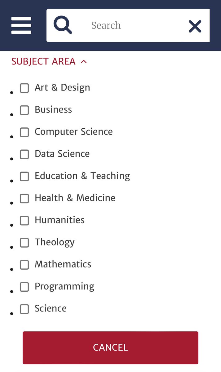 واضغط على Subject Area, وابحث عن تخصصك