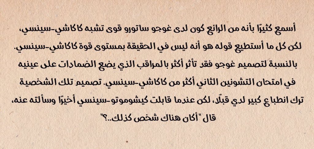 - بتصريح المؤلف اعترف انه شخصية من مانجا ناروتو الهمته بصنع غوجو ساتورو