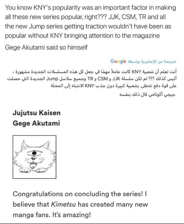 أكد جيجي، مؤلف "جوجوتسو كايسن" في مقابلة لبرنامج Mando Kobayashi على قناة Fuji TV