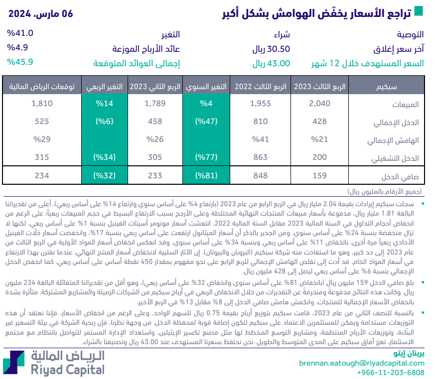 تقييم وتحليل شركة سبكيم: