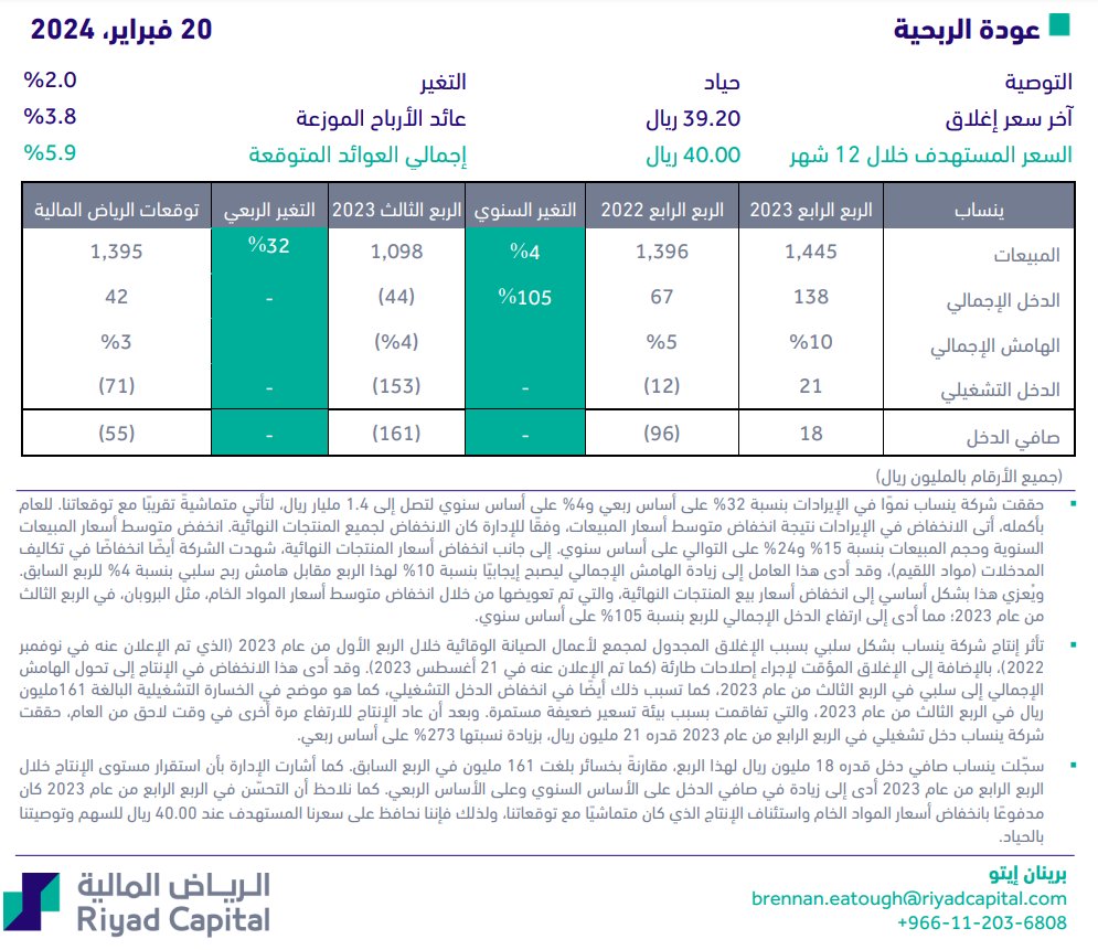 ملاحظة كل ما يضاف من الرياض المالية شركة مالية مرخصة وهذا أحدث تحليل من الشركة (بعد النتائج المالية السنوية) والسعر العادل هو السعر المستهدف خلال 12 شهر حسب تقييم الرياض المالية.