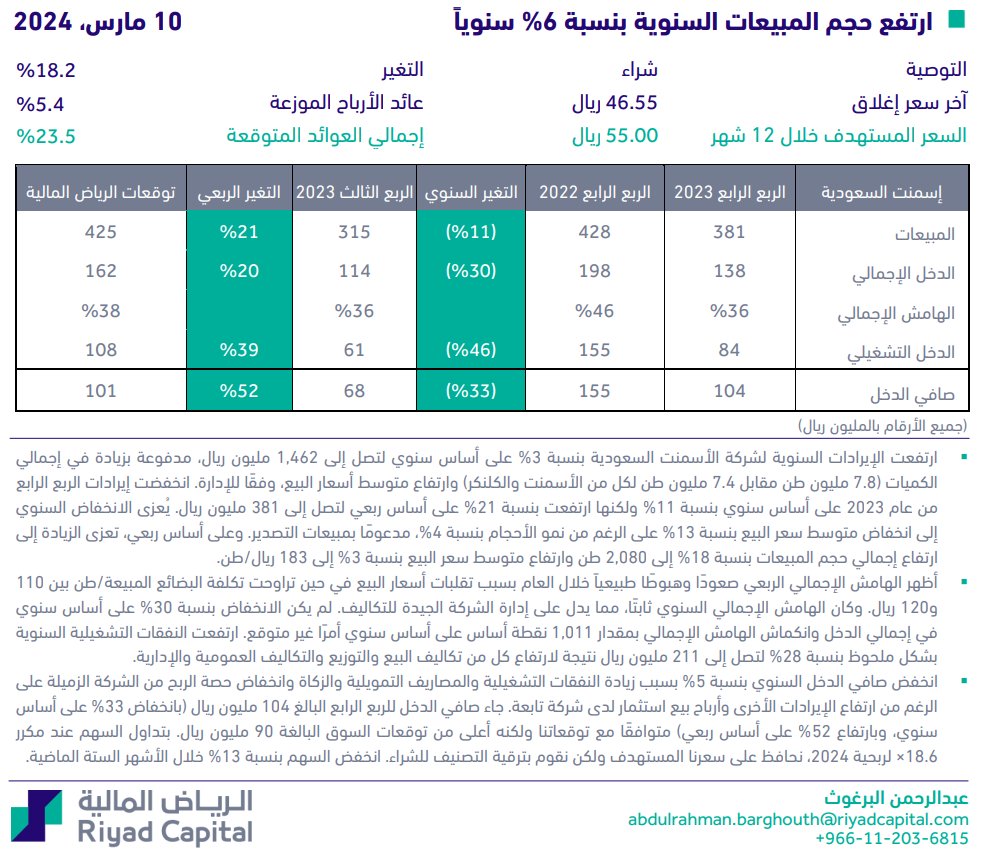 تقييم وتحليل أسمنت السعودية: