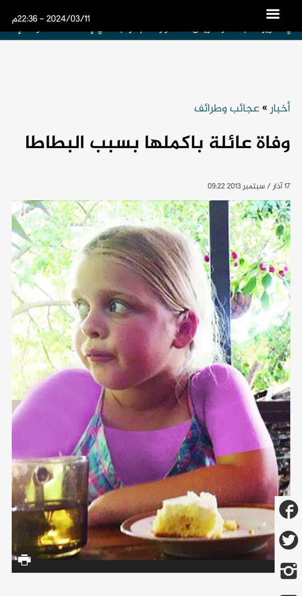 بالإضافه لوجود لغاز السولانين المنطلق من البطاطس المتعفنه مع غازات اخرى وهذا ساهم في اللي حصل للعائلة