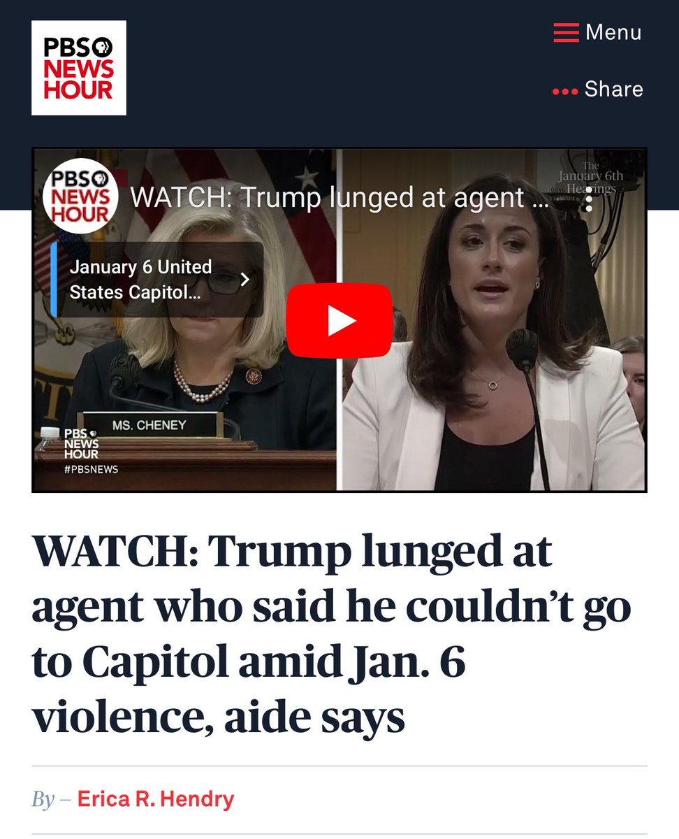 You’re familiar with the story I suspect but just in case: when former aid Cassidy Hutchinson testified Trump had “lunged” for a secret service steering wheel on Jan. 6, the media rushed to print the salacious (& false) claims as true.