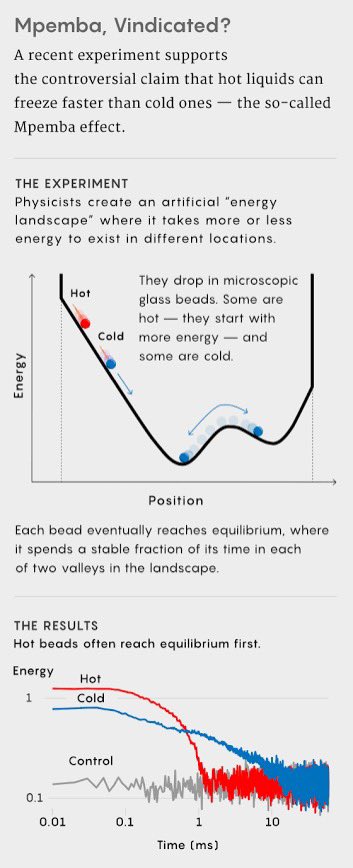 ودراسات من باحثين عام 1969 أظهرت أنه إذا تم تبريد الماء فقط عن طريق التبخر وحافظ على درجة حرارة موحدة، فإن الماء الدافئ سوف يتجمد قبل الماء البارد ، ومع ذلك يقول بعض العلماء انّ التبخر وحده لا يكفي