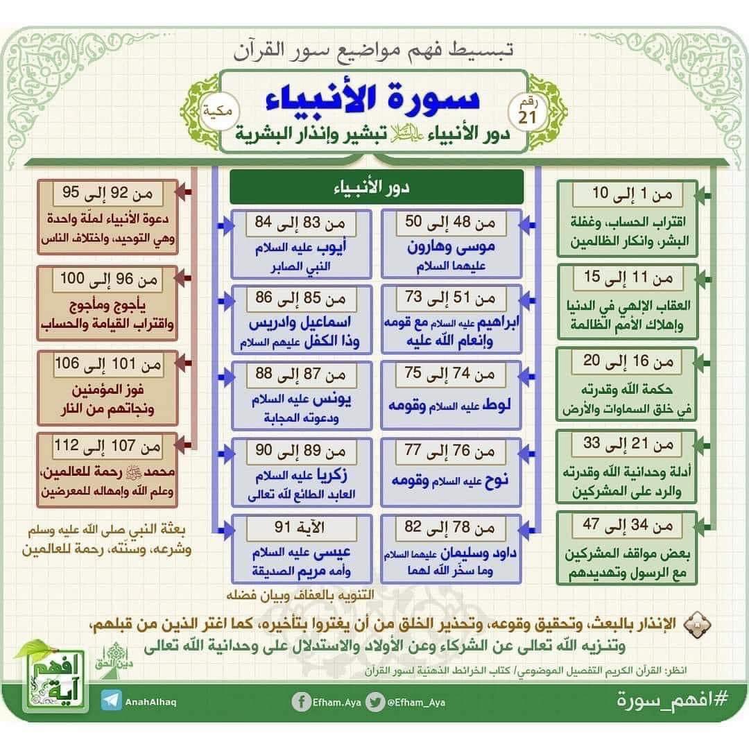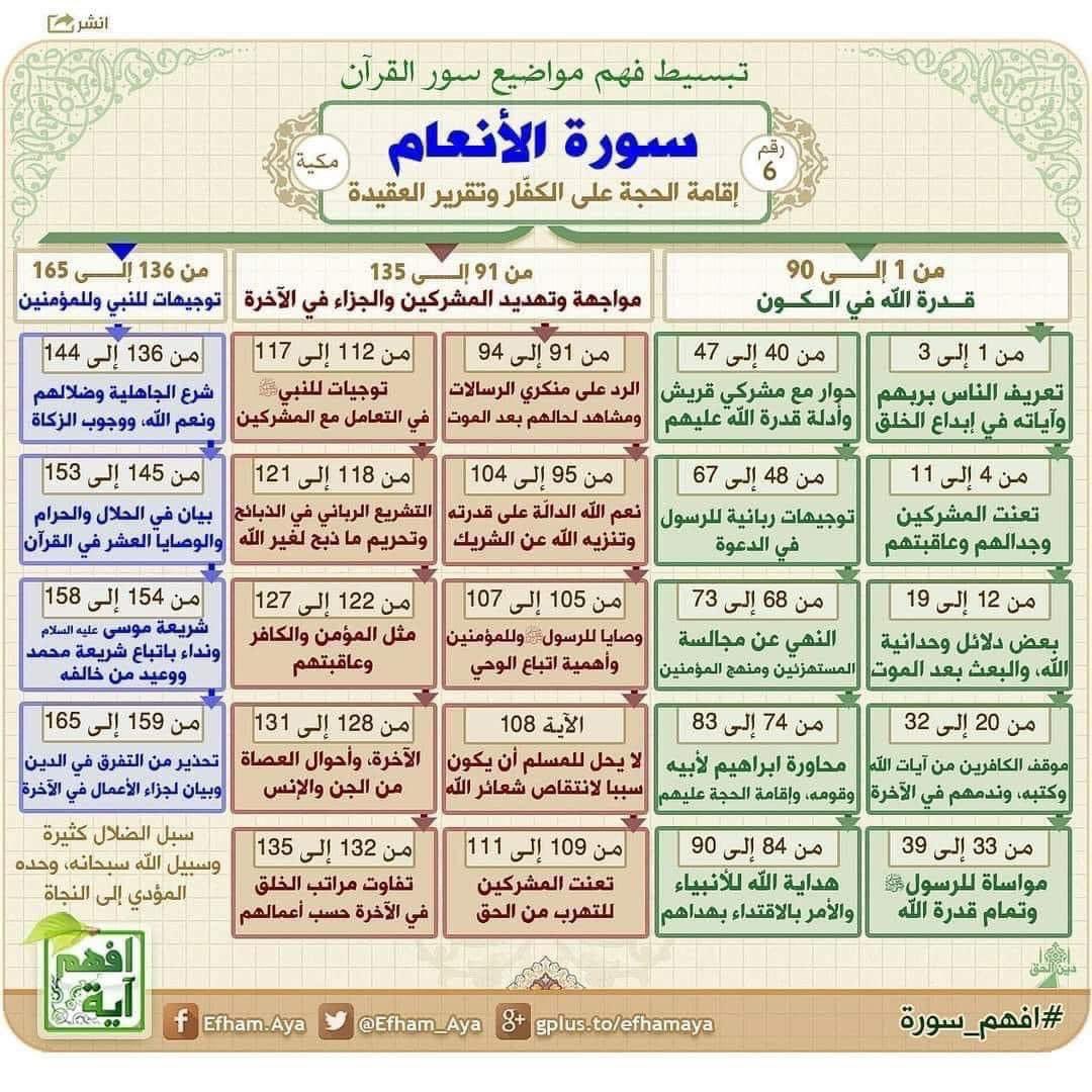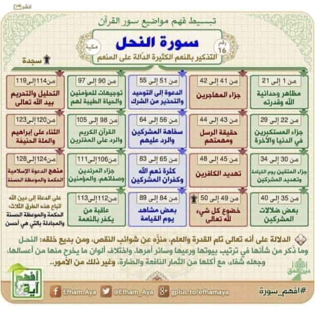 كل سورة في القرآن الكريم مقسمة إلى قصص ومواضيع