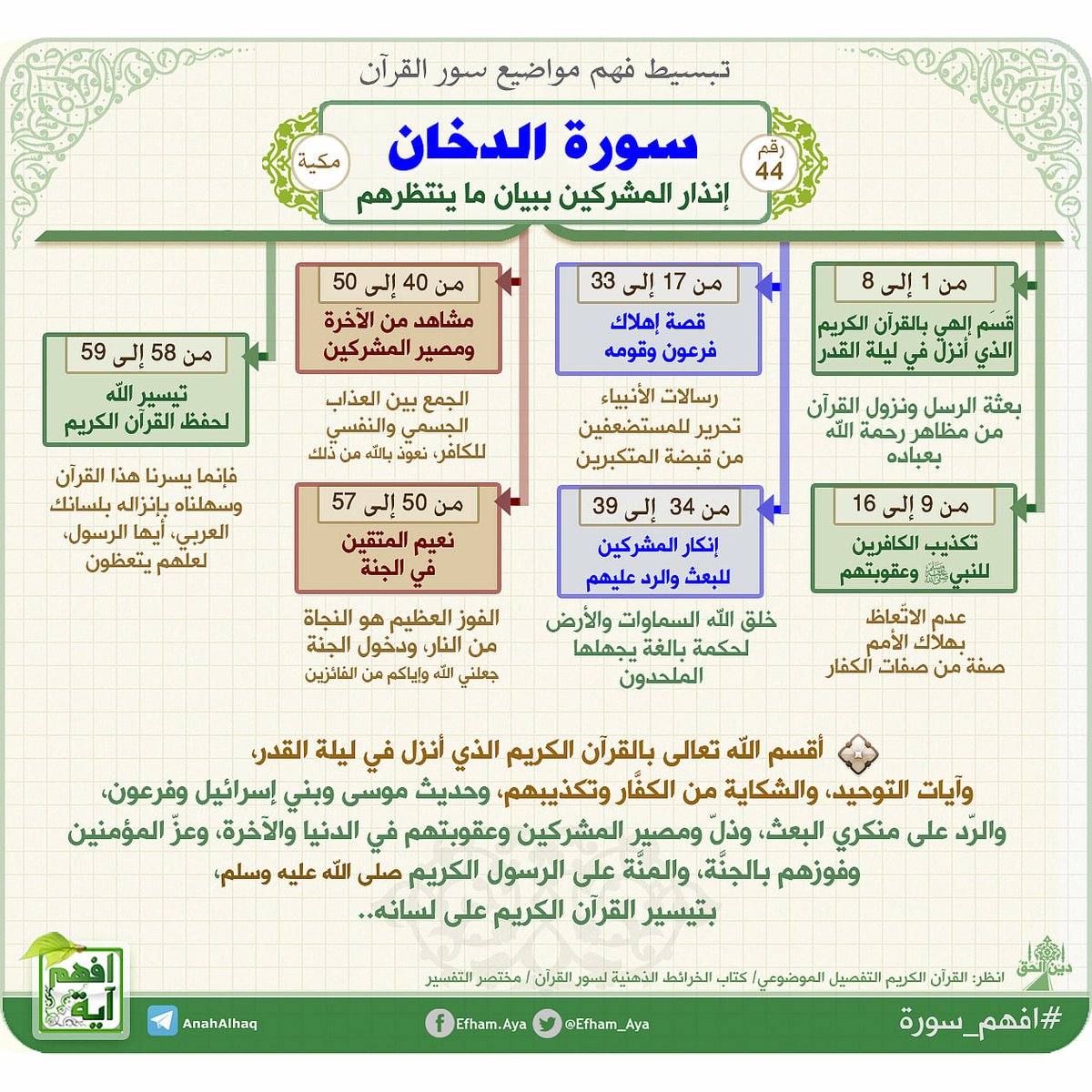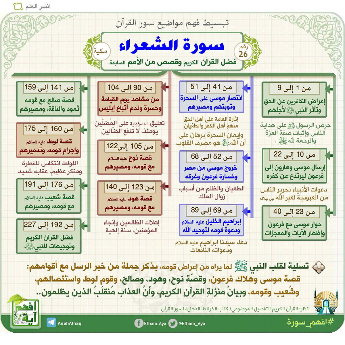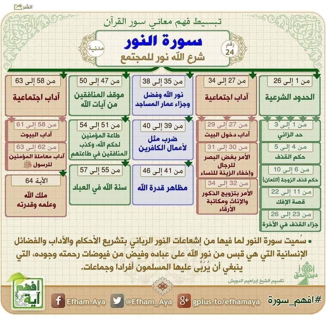 كل سورة في القرآن الكريم مقسمة إلى قصص ومواضيع