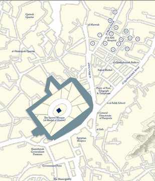 Bu alan peygamberin de doğduğu, Beni Haşim (Haşimoğulları) evleri ile de komşu. Evin bulunduğu yerde o zamanlarda mevcut olan sokağın isimleri el-Hacer ve el-Attarin Sokağı. Tarihi kaynaklardan elde edilen bu bilgilerle evin Harem-i Şerif'in es-Selam Kapısı önünde olduğu bilindi.