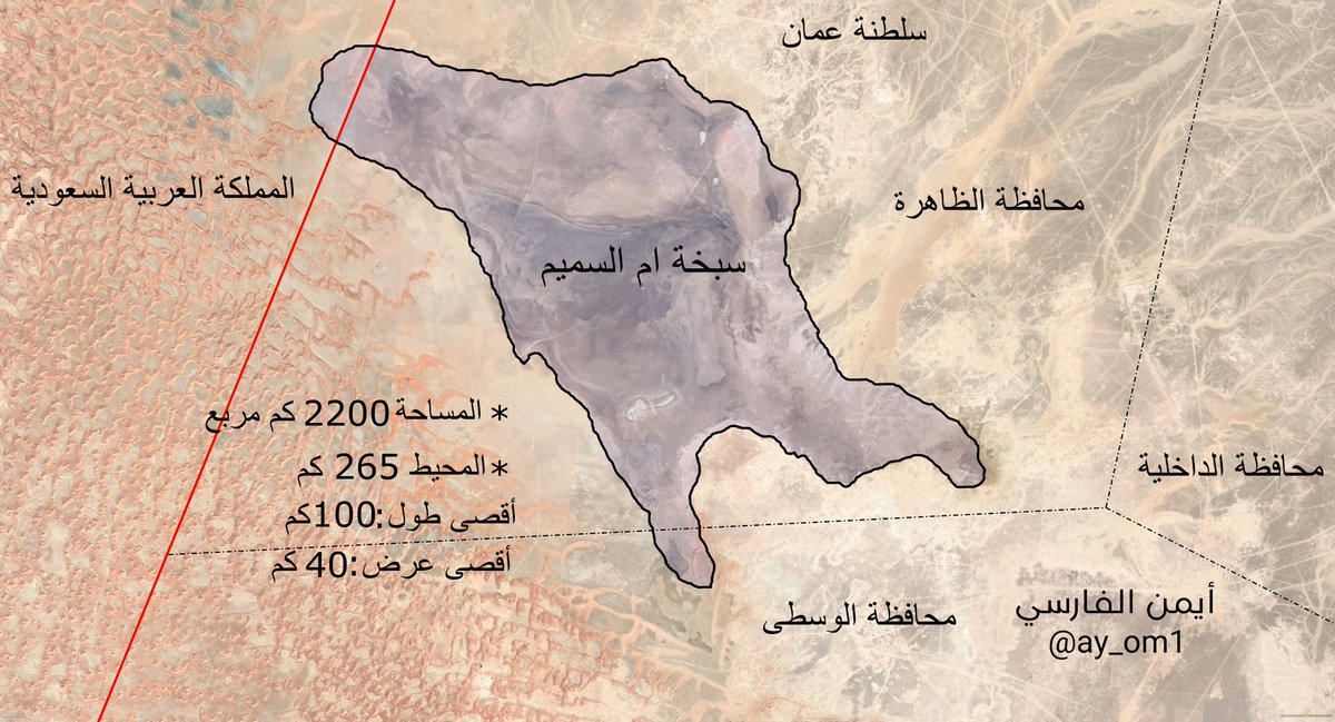 سبخة ام السميم واحدة من أكبر السبخات في شبه الجزيرة العربية ، تشكلت بفعل تدفق مياه الأودية و الأمطار من جبال الحجر الغربي حتى ترسبت في منطقة منخفضة مابين محافظتي الظاهرة و الوسطى و أجزاء من الحدود الدولية للسعودية، تعرف على السبخة في التغريدات التالية،، ⬇️