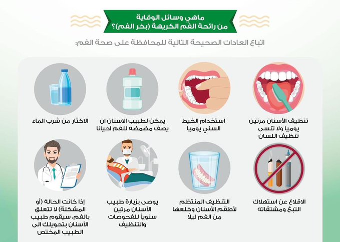 تجنب التدخين والأطعمة التي تسبب أنواع رائحة الفم الكريهة المختلفة.