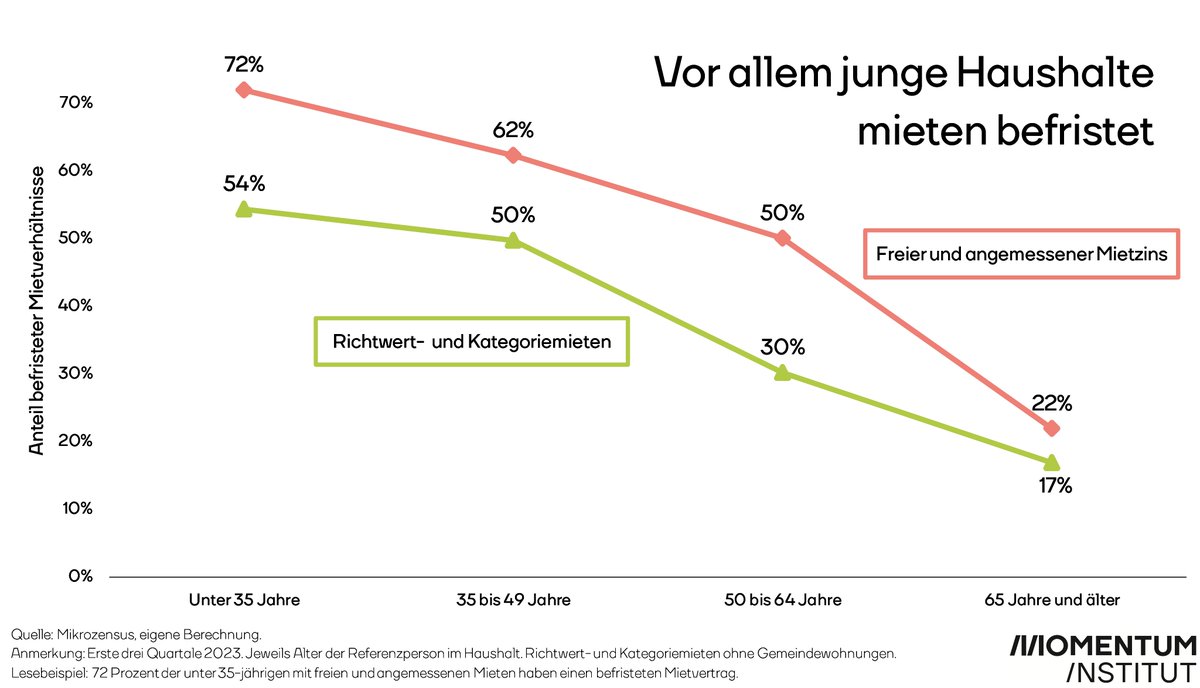 Das Momentum Institut fordert daher ein Verbot von befristeten Mietverträgen für gewerbliche Vermieter:innen und eine Stärkung des sozialen Wohnbaus. Die gesamte Analyse findet ihr hier: momentum-institut.at 6/6