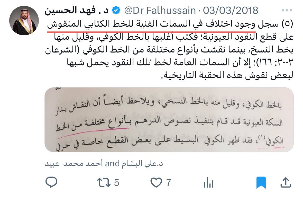 @Dr_Falhussain 7 - وبسبب اختلاف القياسات العيارية للعملة المنسوبة للعيونيين يرجح الدكتور احتمالية أنها مزيفة
