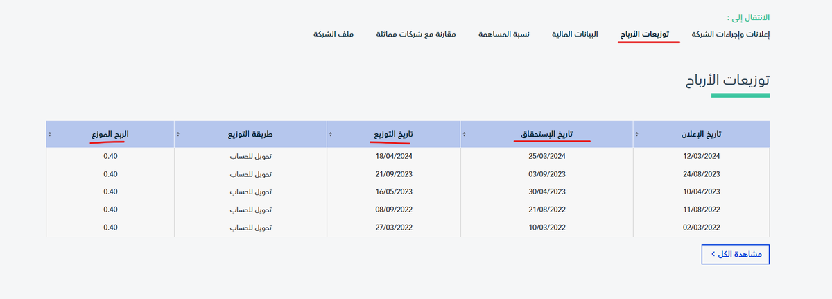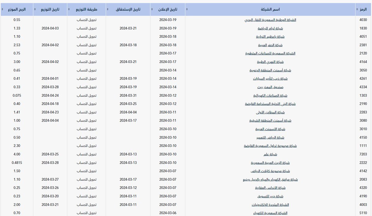 خدمة مميزة جداً من تداول لسهولة معرفة التوزيعات النقدية القادمة