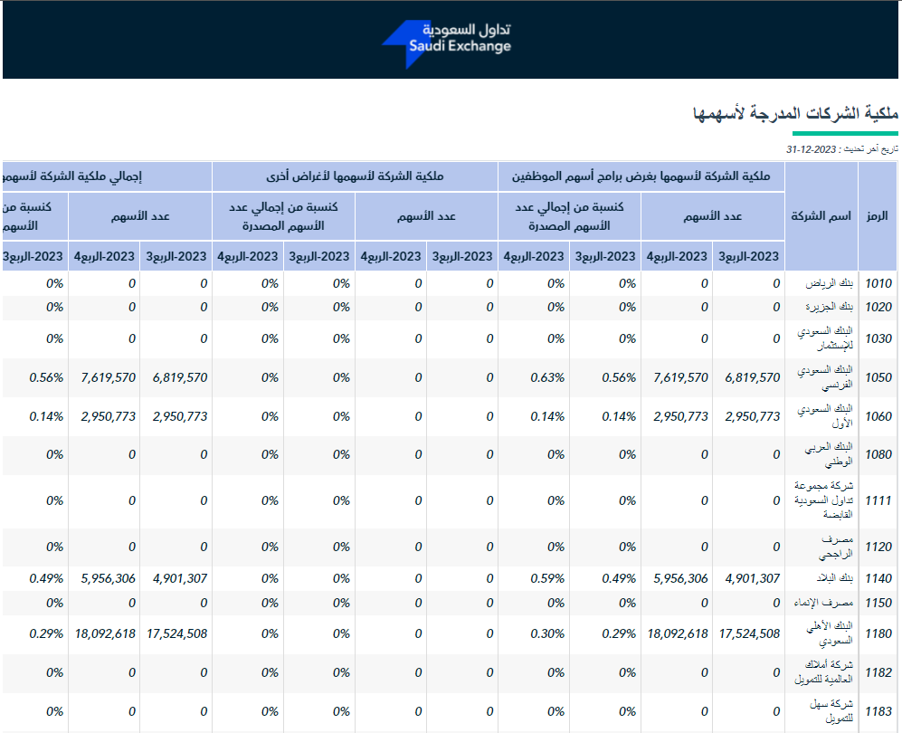 - كم تملك الشركة من أسهمها