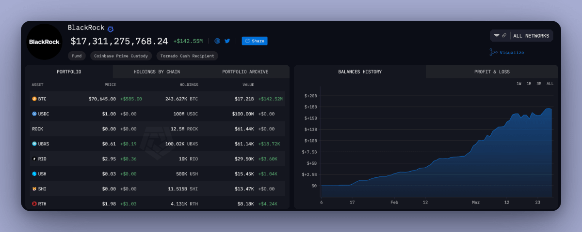 Today, I used @ArkhamIntel to explore BlackRock's holdings and identify which RWA tokens it's currently investing in.