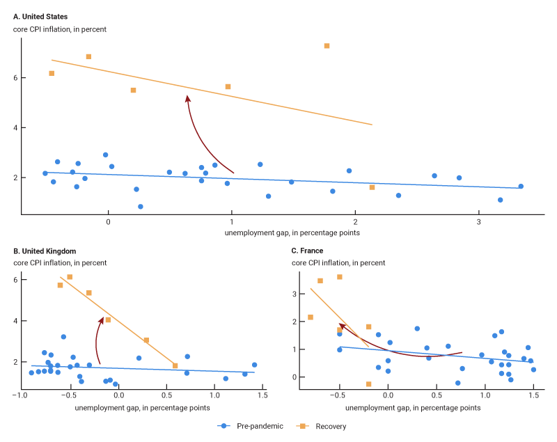 مرفق مع المقالة صوة من بحث من منشورات الاحتياطي الفيدرالي في شيكاغو توضح منحنى فيلبس وانتقاله من التسطح للعلاقة العكسية بعد كوفيد في كل من الولايات المتحدة وبريطانيا وفرنسا .. والمهتم يجد رابط البحث هنا:
